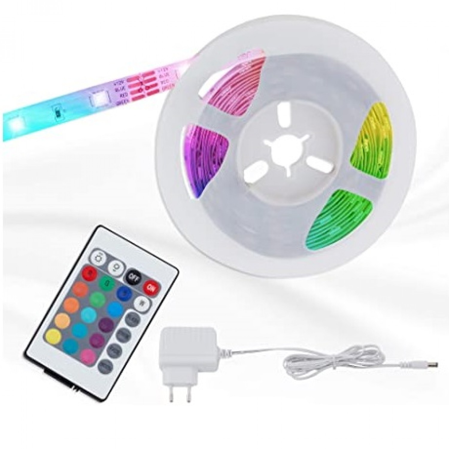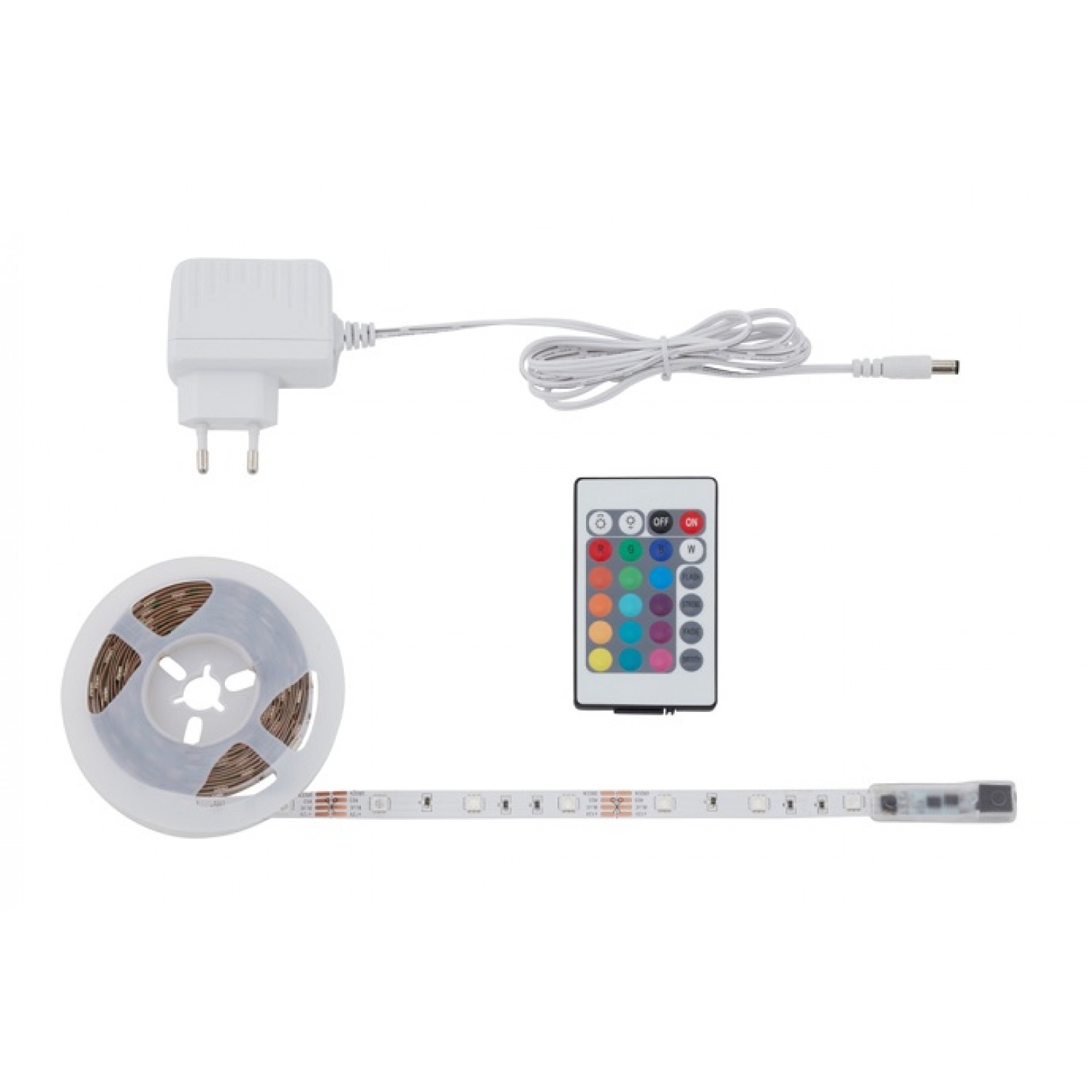3m garš RGB LED slokšņu komplekts ar 30 diodēm/metrā, IP20 aizsardzības klasi un ar silikona pārklājumu. Komplektā ietilps 3 metri pašlīmējoša RGB LED lenta, barošanas bloks un kontrolieris ar pulti. LED sloksne var saīsināt to griežot norādītajās vietās, bet to nevar pagarināt bez speciālām ierīcēm.