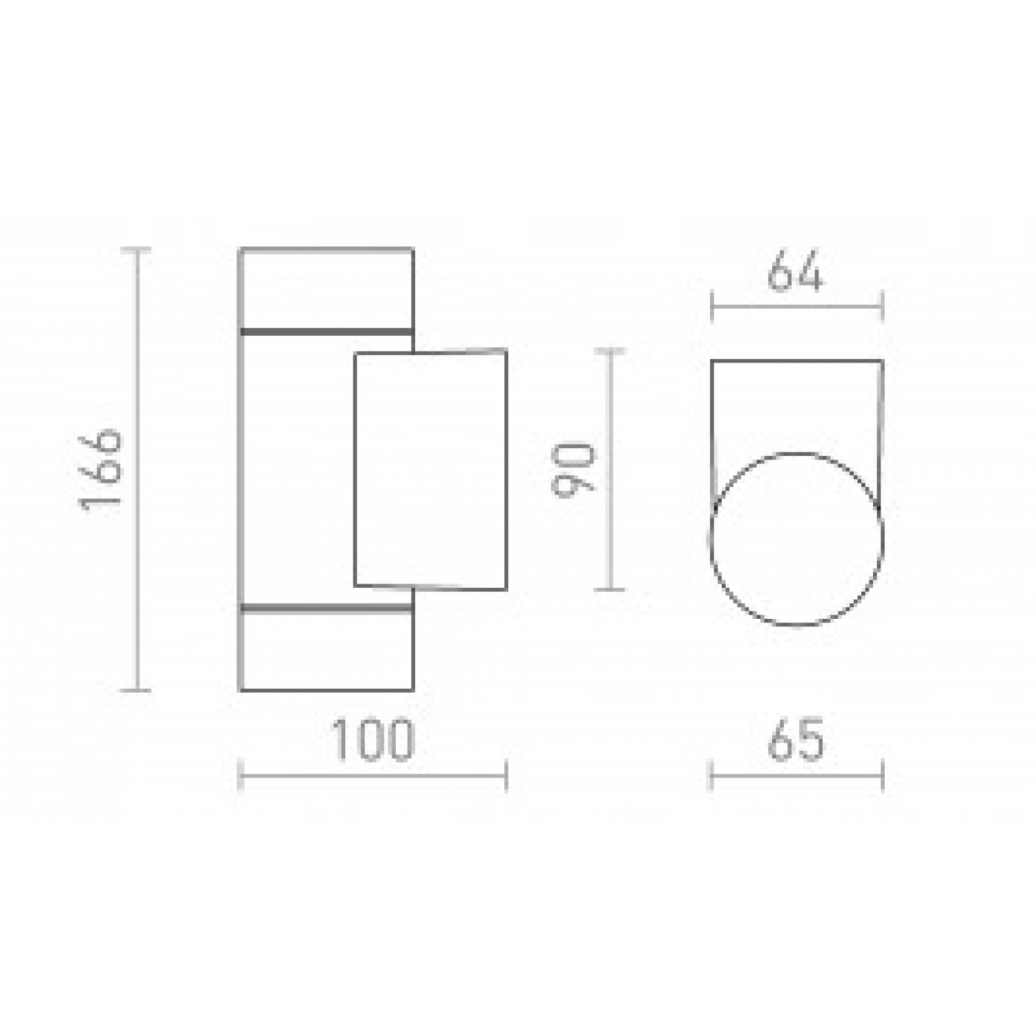 Gaismekļa izmēri: 100 x 90 x 166 mm