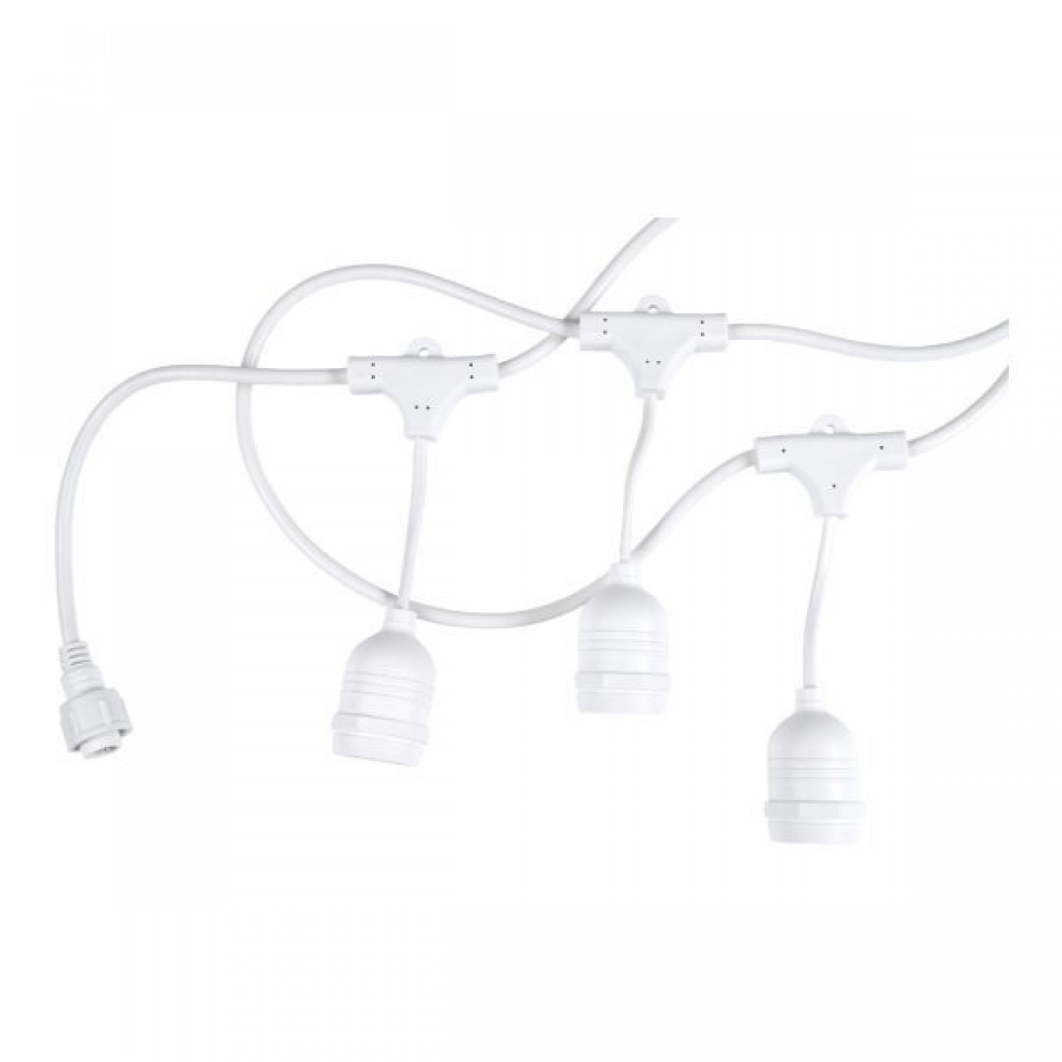 Balta - ūdens, vēja, saules un sniega droša - āram paredzēta gaismu virtene ar 15x E27 cokoliem (spuldzes nav komplektā).