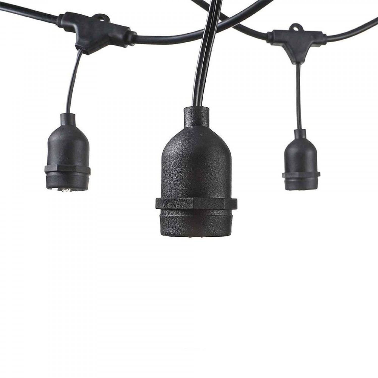Ūdens, vēja, saules un sniega droša - āram paredzēta gaismu virtene ar 15x E27 cokoliem (Spuldzes NAV iekļautas komplektā).