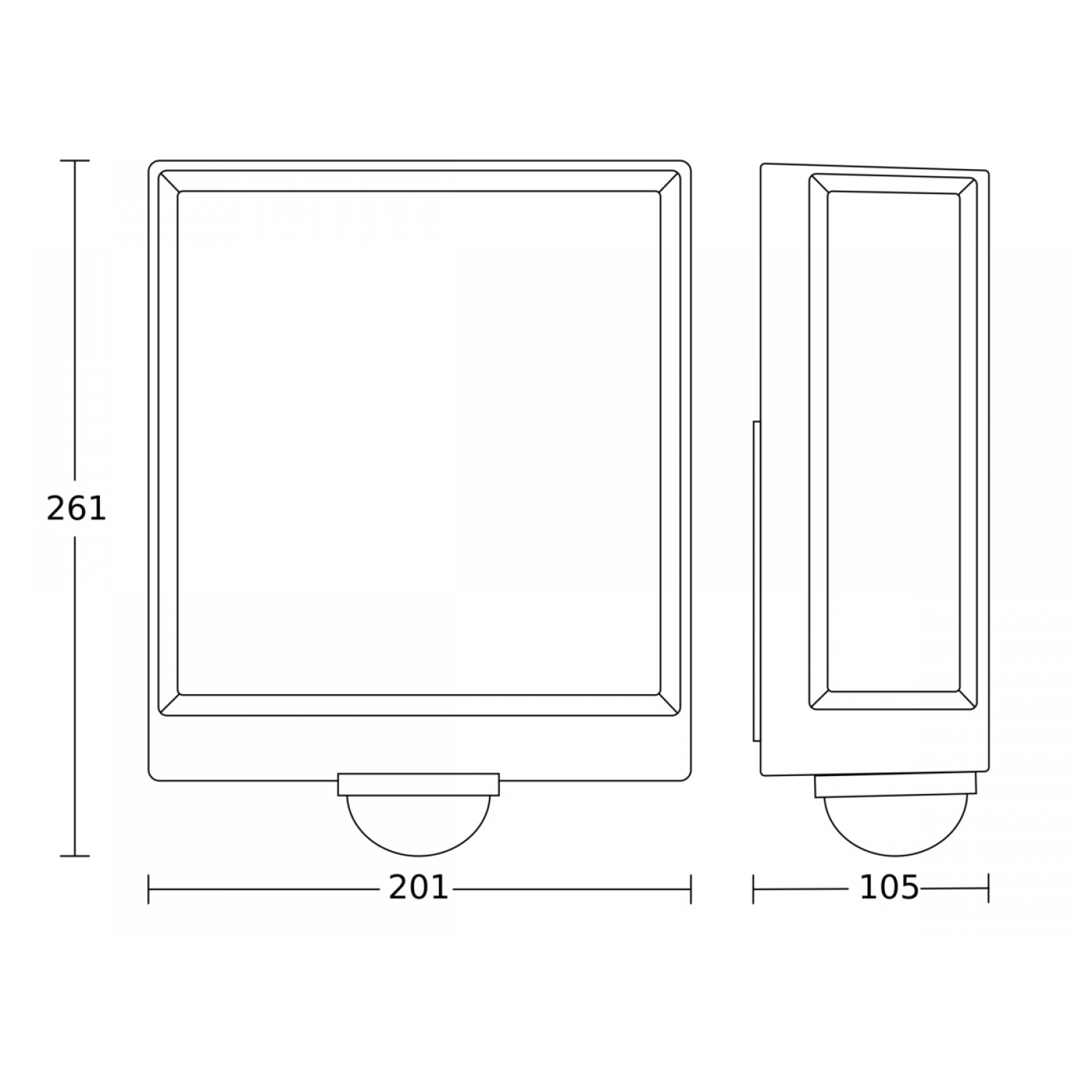 Gaismekļa izmēri: 105 x 201 x 261 mm