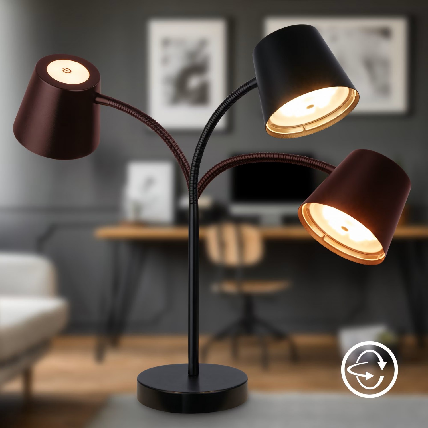 Briloner Biwo LED galda lampa (modelis 7502016) ir bezvadu, regulējama un grozāma balta lampa. Tā piedāvā elastīgu apgaismojumu, ko var pielāgot dažādām vajadzībām. Lampa ir aprīkota ar iebūvētu akumulatoru, kas nodrošina mobilitāti un ērtu lietošanu bez nepieciešamības pēc pastāvīga strāvas avota. Regulējamā spilgtuma funkcija ļauj pielāgot apgaismojumu atbilstoši vēlamajai atmosfērai. Grozāmais dizains nodrošina gaismas virziena pielāgošanu, padarot to piemērotu dažādām darbībām, piemēram, lasīšanai vai darbam.