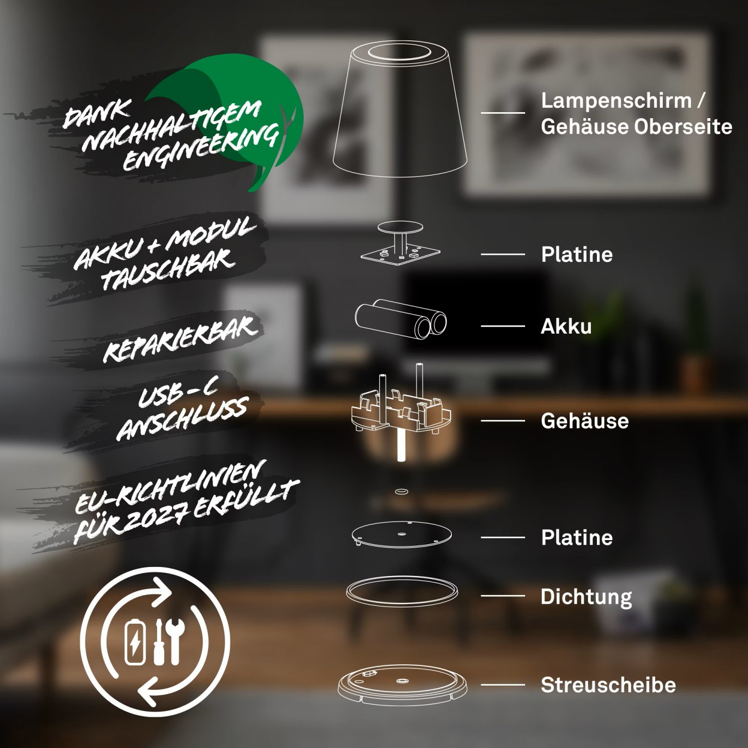 Gan akumulators, gan LED modulis ir nomaināmi, nodrošinot ilgstošu lietošanu un vienkāršu apkopi