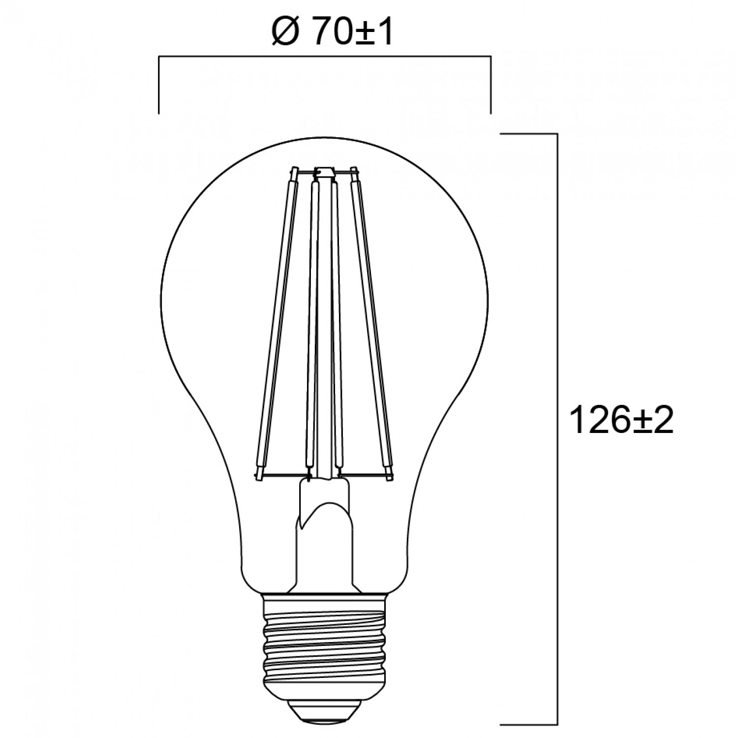 LED spuldze ar E27 ligzdu. Jauda: 11W, Gaismas plūsma: 1521lm, Krāsu temperatūra: 2700K. Izmērs: 126 × 70 mm. Ražotāja garantija: 3 gadi.