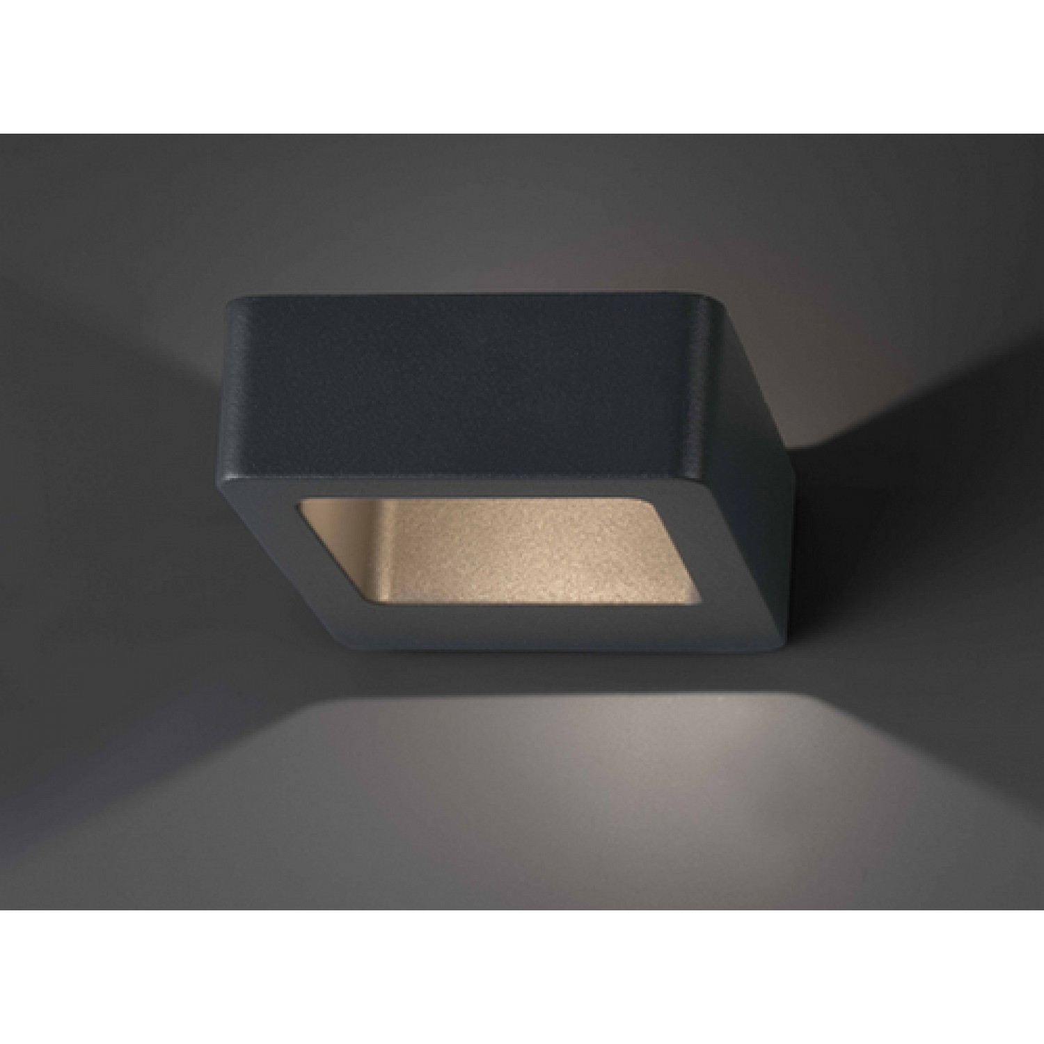 Moderns sienas gaismeklis DAS tumši pelēkā krāsā, kas apvieno LED tehnoloģiju ar dekoratīvu augšup un lejup vērstu gaismu.