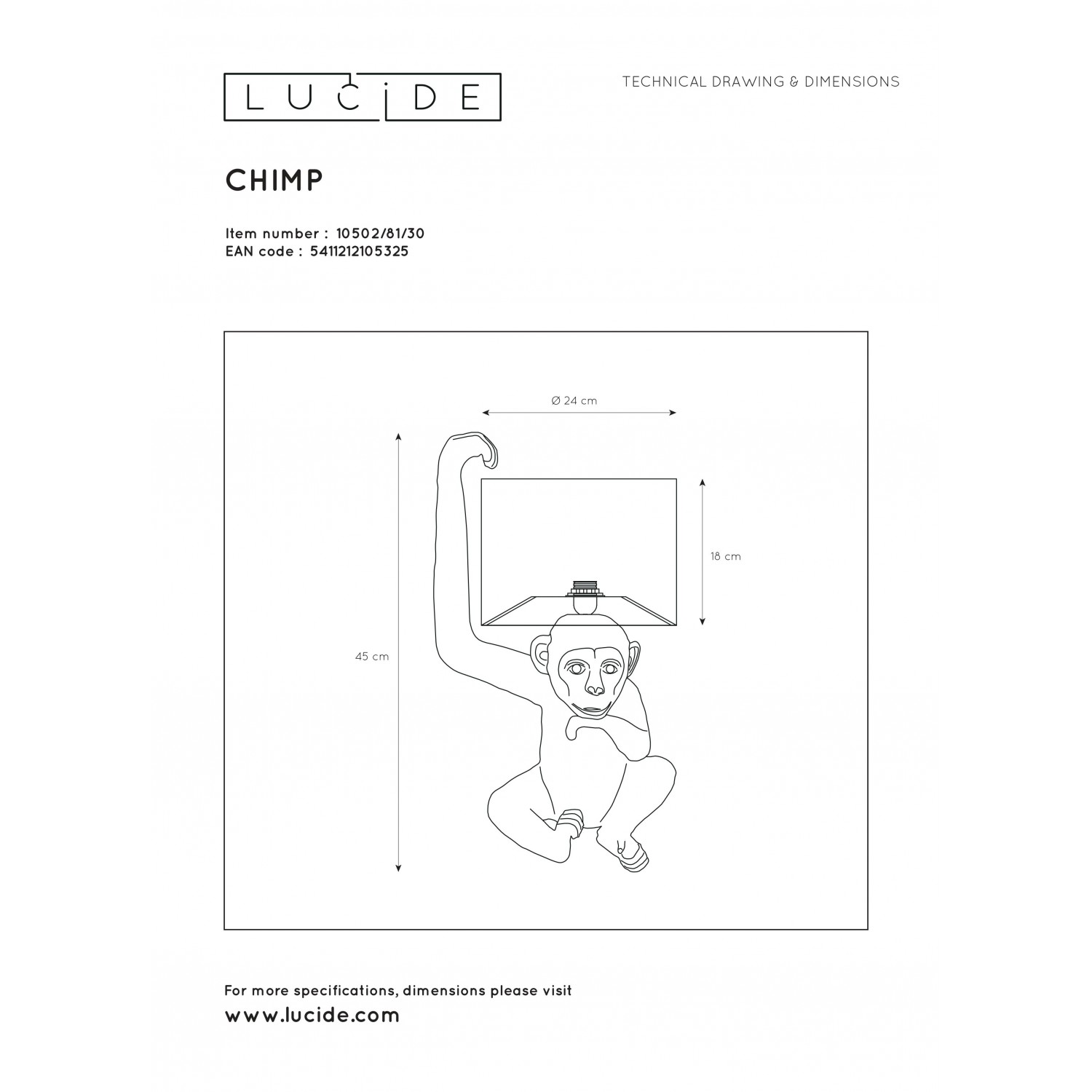 EXTRAVAGANZA sērijas gaismekļi izceļas ar to neparasto dizainu, apvienojot retro un mūsdienu dizaina elementus. Arī galda lampa EXTRAVAGANZA CHIMP nav izņēmums. Lampas dizainā apvienoti gan metāla, gan auduma elementi un to īpaši papildina šimpanzes figūra. Galda lampa iederēsies ne tikai viesistabā vai guļamistabā, bet arī kādā gaitenī, kas savieno istabas. Galda lampas dizainā ir izmantoti augstas kvalitātes materiāli. Detaļām ir nozīme un EXTRAVAGANZA sērijas gaismekļi par to neļauj aizmirst.