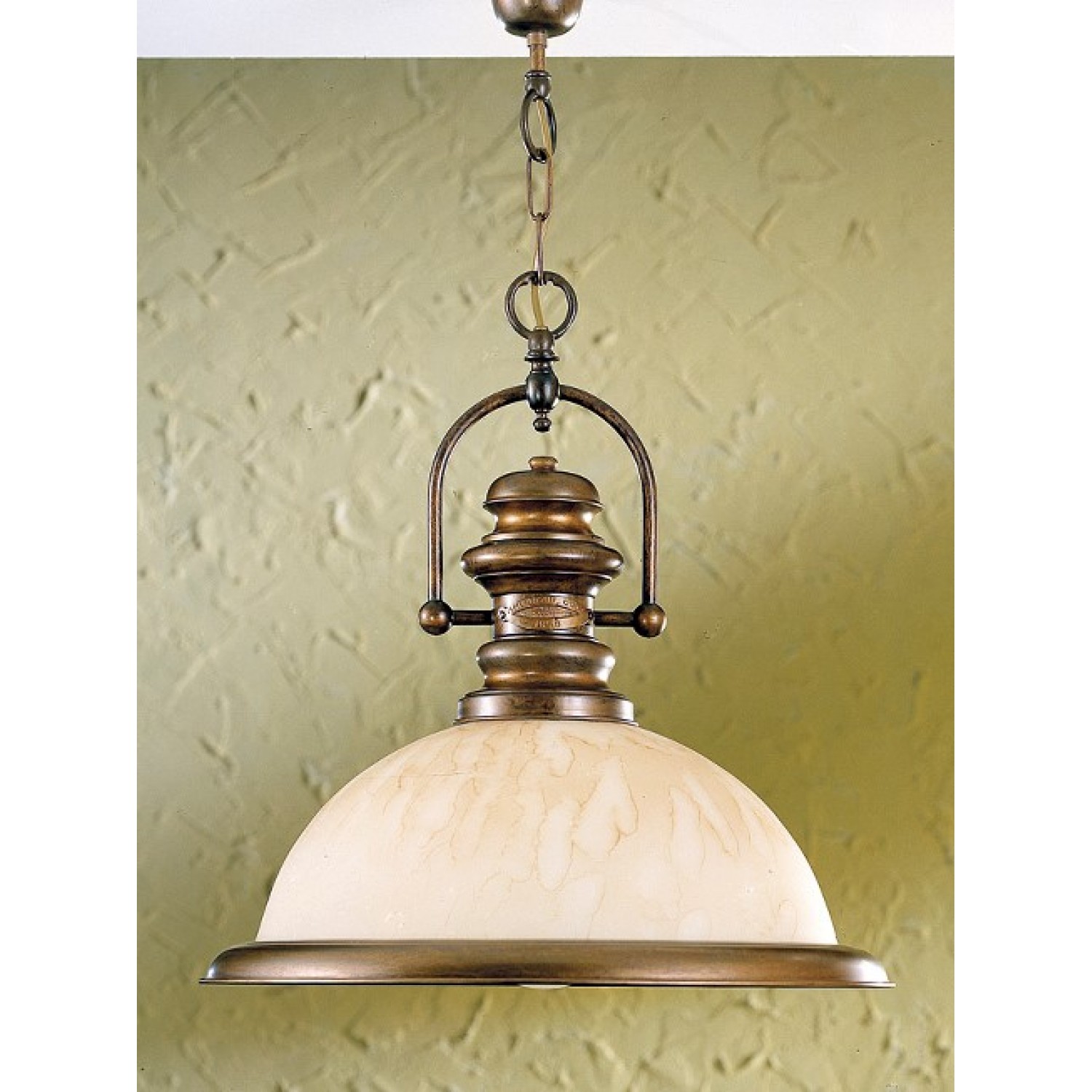 Lampa ir izstrādāta pilnībā no metāla - misiņa, kuram klāt ir stikla abažūrs.