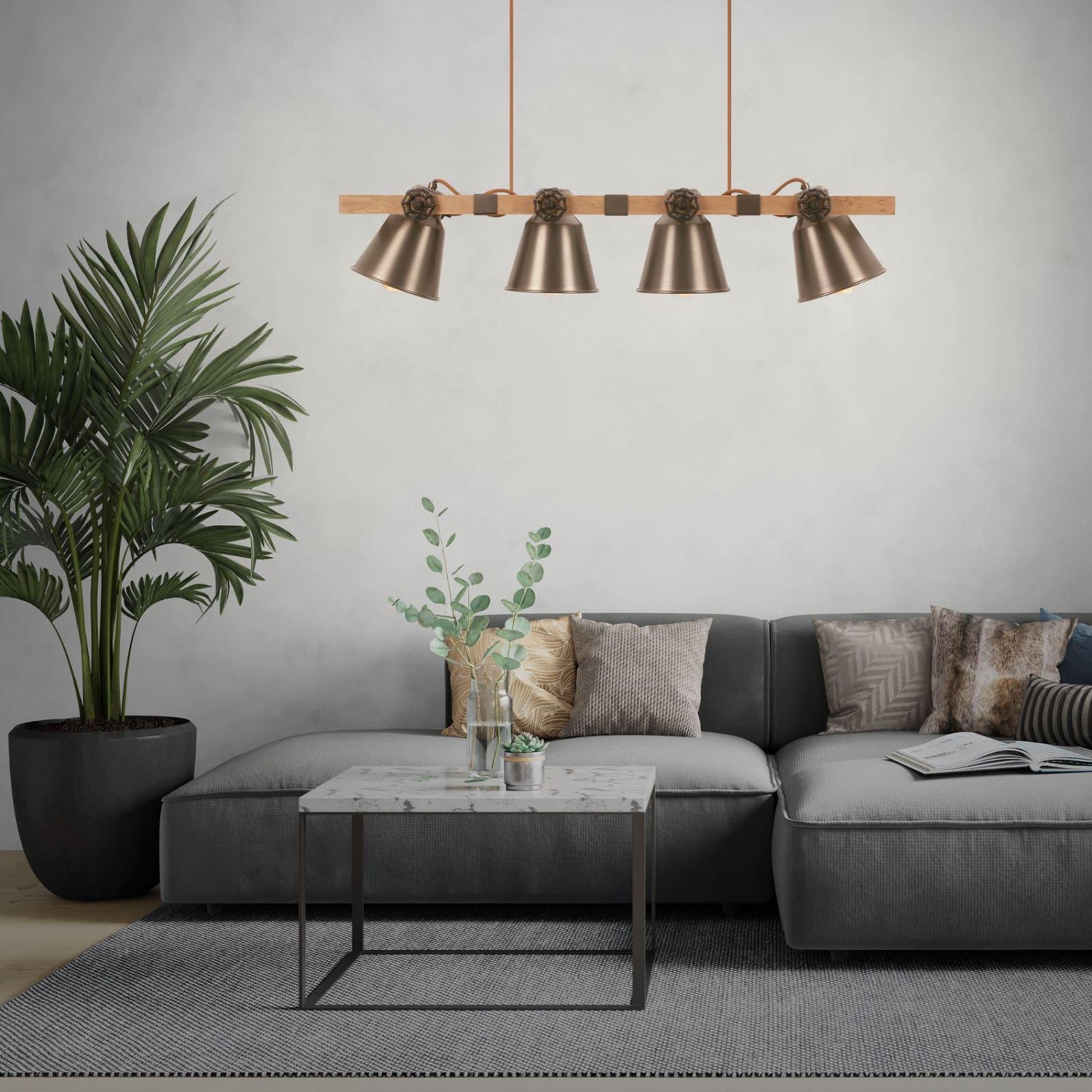 Šī industriālā stila piekaramā griestu lampa Briloner 4406044 ar četriem spuldžu turētājiem un antīkpelēku metāla apdari piešķir mājoklim autentisku un stilīgu akcentu. Ar 85 cm garumu tā ir lieliski piemērota novietošanai virs ēdamgalda vai virtuves salas, nodrošinot plašu un efektīvu apgaismojumu. Piekaramo augstumu iespējams pielāgot līdz 110 cm, kas ļauj piemērot lampu telpas vajadzībām. Spuldzes nav iekļautas komplektā, sniedzot Jums iespēju pašiem izvēlēties piemērotāko gaismas toni un spilgtumu. Ar četrām E27 ligzdām Jūs varat izmantot arī modernās LED spuldzes. Spuldzes ir nomaināmas, ja ir nepieciešamība pēc cita gaismas toņa vai spilgtuma.