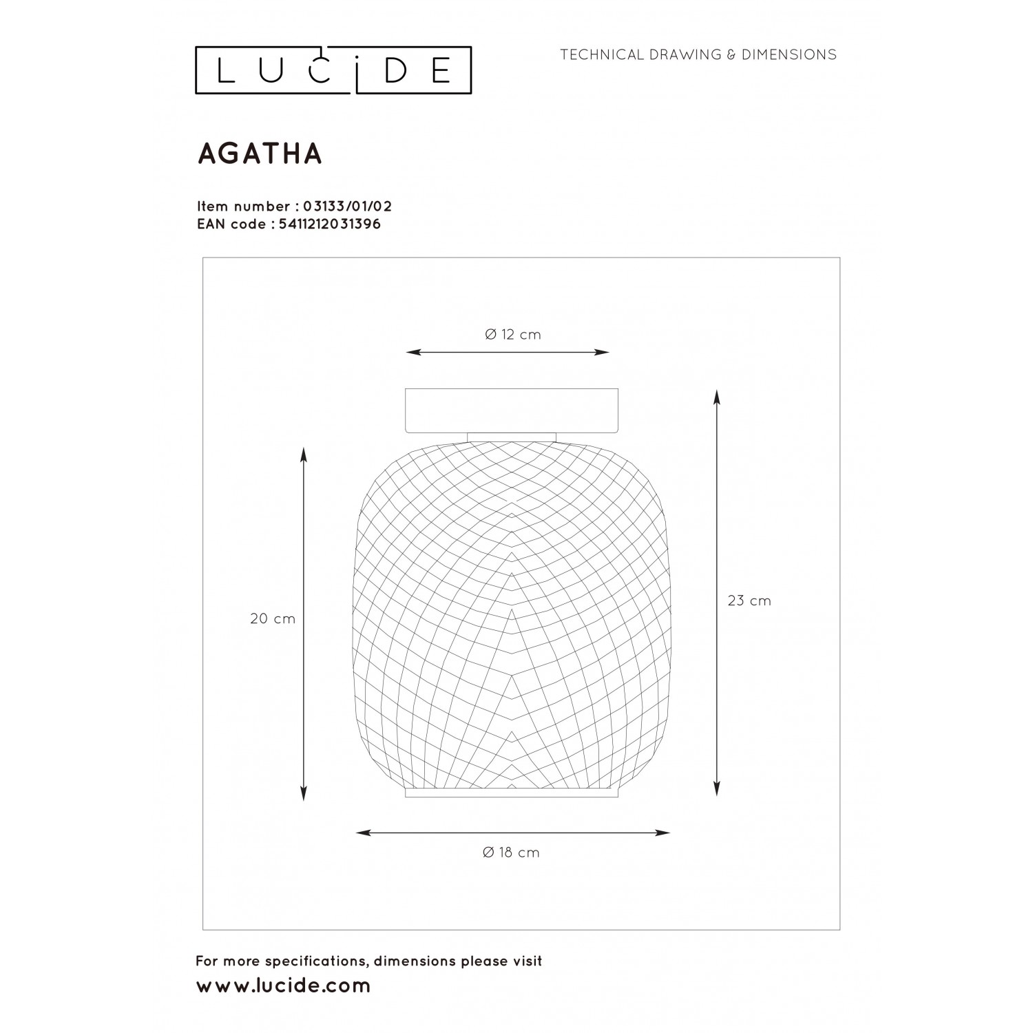 Griestu gaismeklis AGATHA pēc formas un tekstūras mazliet atgādina ananāsu, taču tāpat lampa izskatās ļoti grezna. Šis gaismeklis apvieno modernus un retro dizaina elementus. Gaismekli ir iespējams savienot ar gaismas regulatoru/reostatu un ar gaismas spilgtumu telpā radīt nepieciešamo atmosfēru.