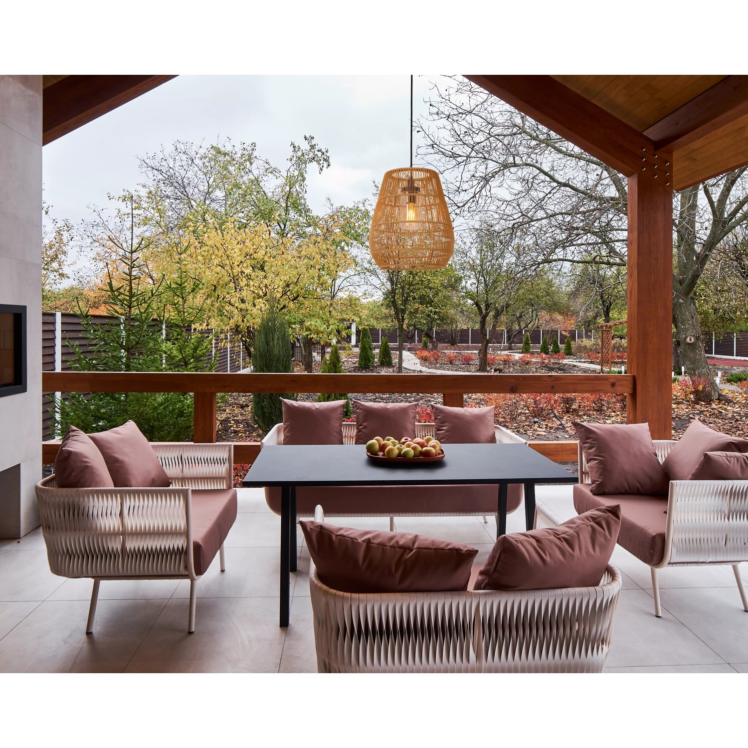 Lucide NERIDA ir āra piekaramā lampa ar kontaktdakšu, pieejama melnā un smilšu krāsā ar ratanveidīgu PVC abažūru (Ø35 cm) un IP44 aizsardzību, padarot to piemērotu lietošanai ārpus telpām. Lampa ir aprīkota ar vienu E27 ligzdu (līdz 40W) un 350 cm garu vadu. Augstumu var regulēt līdz 389 cm, padarot to ideālu gan funkcionālam, gan dekoratīvam āra apgaismojumam.
