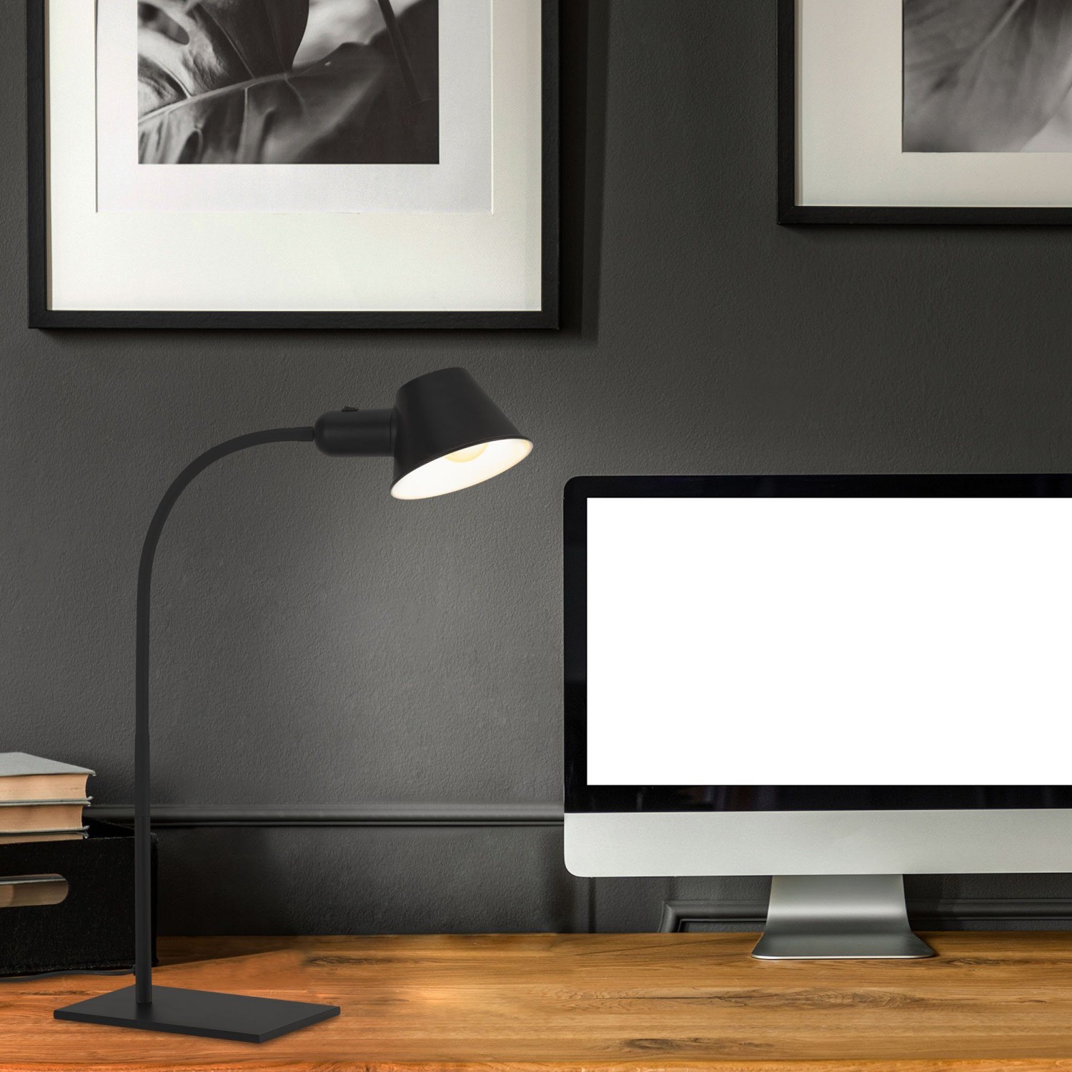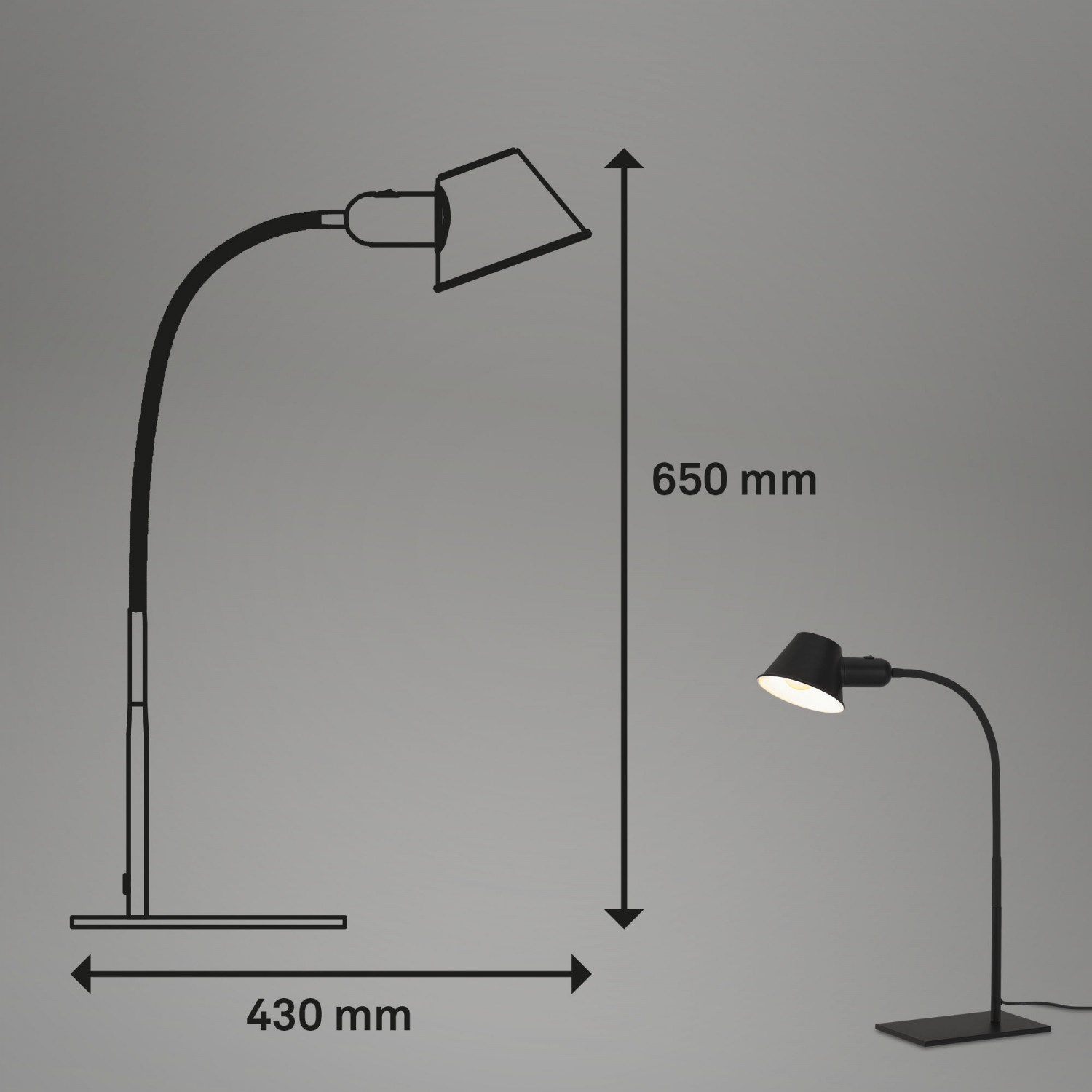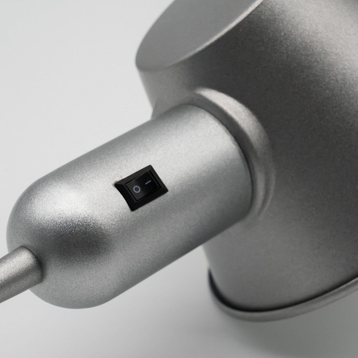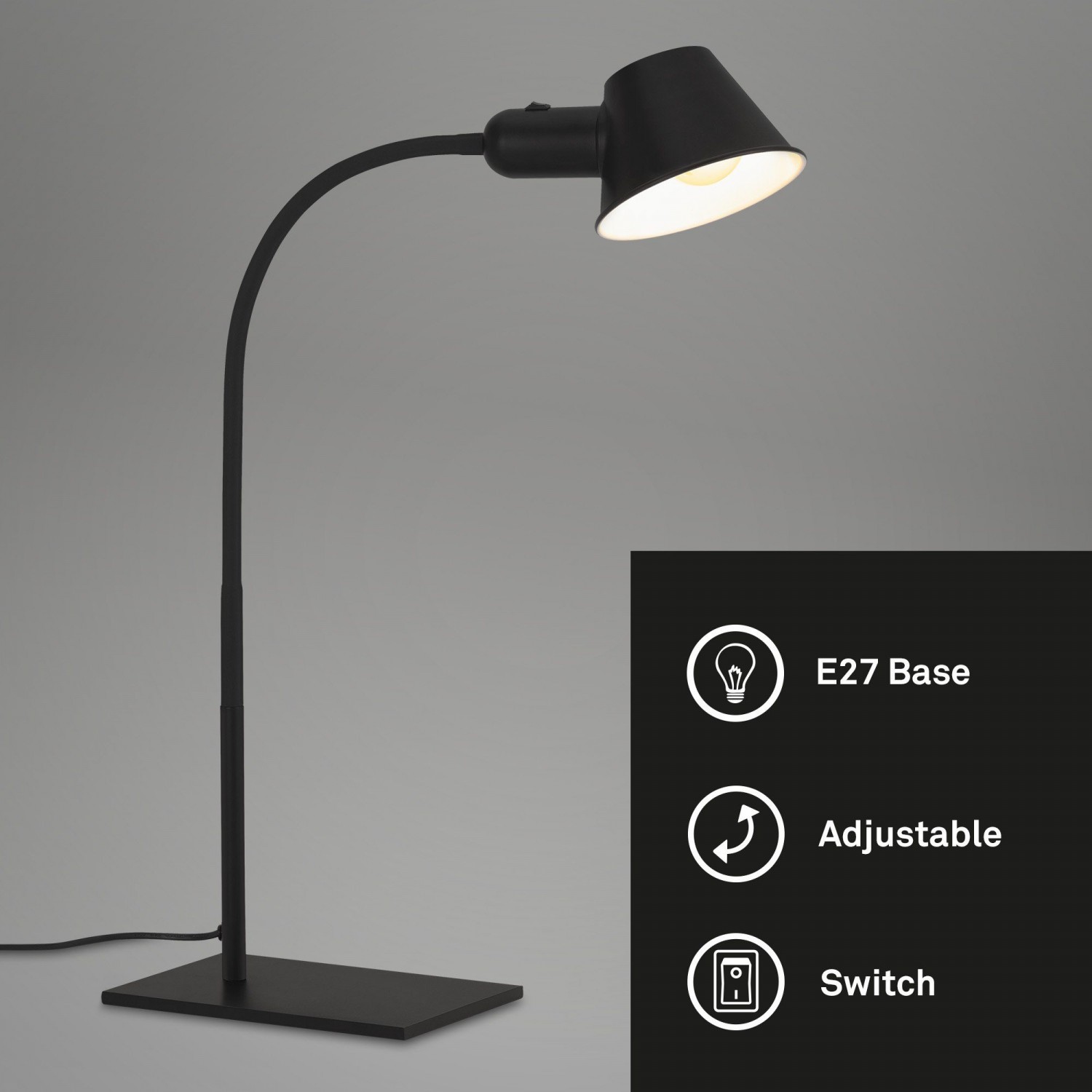 Šī elastīgā, grozāmā galda lampa ir pieejama 2 krāsās, melnā jeb titāna. Pamatne ir ļoti stabila pateicoties tās svaram, kas nodrošinās stabilu lampas novietojumu. Gaismekļa augšējā daļa ir aprīkota ar 40 cm garu elastīgu kātu, kas nodrošina optimālu elastību. Biroja lampu var saliekt un pagriezt, ļaujot izvēlēties starp tiešu un netiešu apgaismojumu, strādājot pie galda vai lasot guļamistabā. Ar slēdzi uz gaismekļa galvas regulējamo naktslampu var viegli ieslēgt un izslēgt. Spuldze nav iekļauta komplektā. Ir nepieciešams spuldze ar E27 cokolu un maksimālo jaudu līdz 10 vatiem.