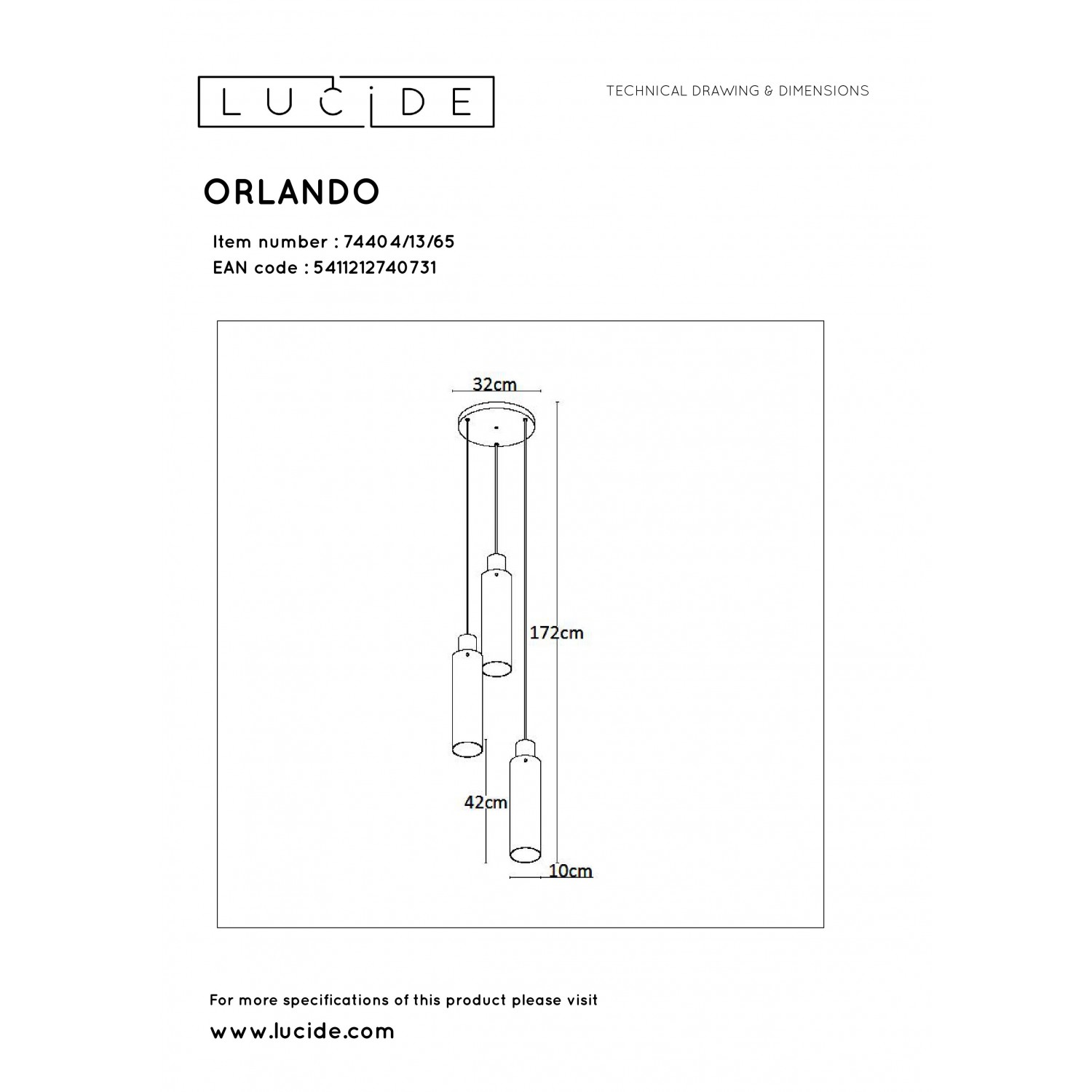 ORLANDO raksturo trīs, dūmoti pelēkas krāsas stikla cilindri, kuri iekarināti dažādos augstumos, radot neparastu griestu lampu. Griestu lampas neparastais dizains atdzīvinās telpu. Katra cilindra augstumu ir iespējams regulēt 120 cm - 172 cm robežās. Gaismekli ir iespējams savienot ar gaismas regulatoru / reostatu, tas ļaus regulēt gaismas spilgtumu un radīt patīkamu noskaņu telpā.