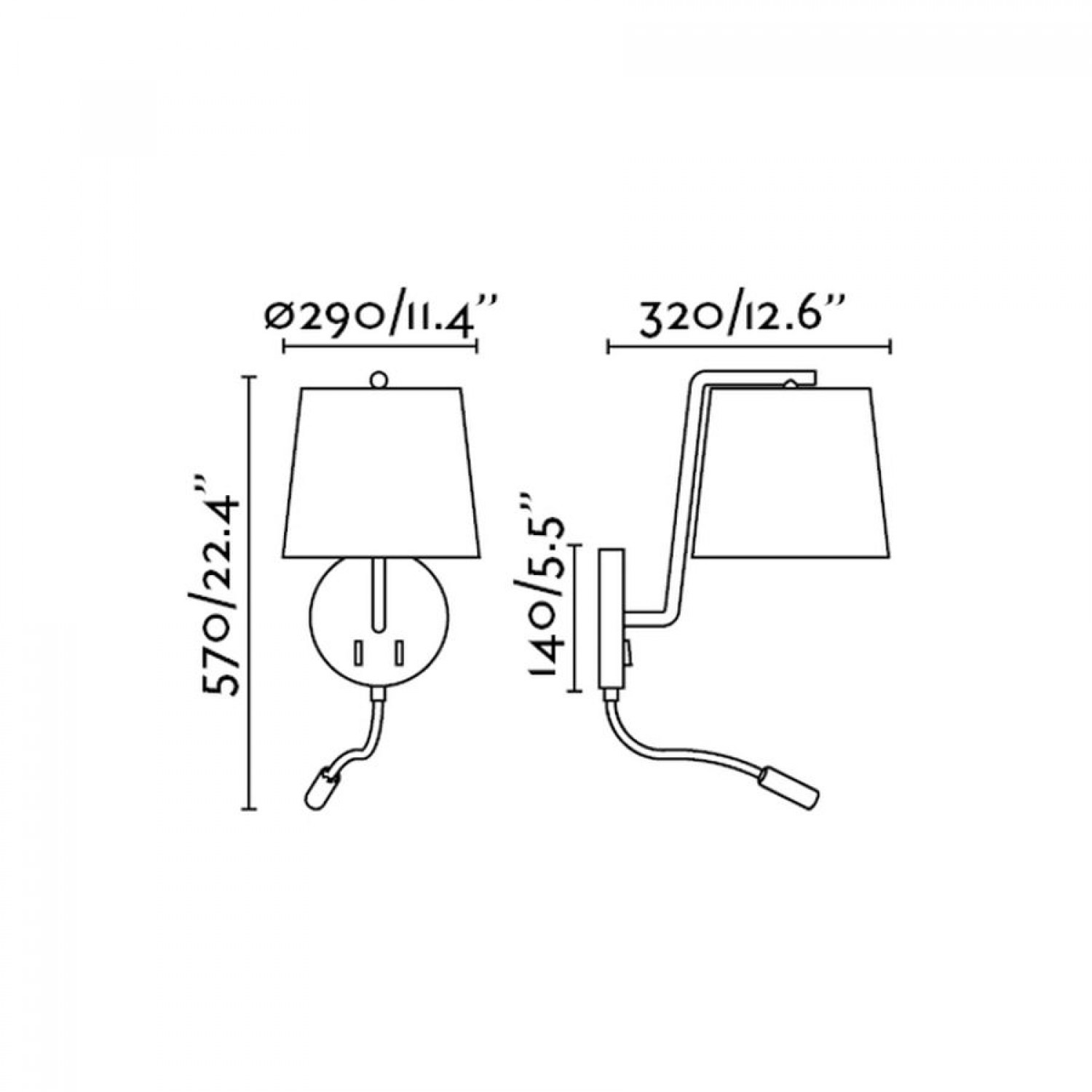 Gaismeklis pieejams divās krāsās: melnā un baltā, un matēta niķeļa krāsā.
