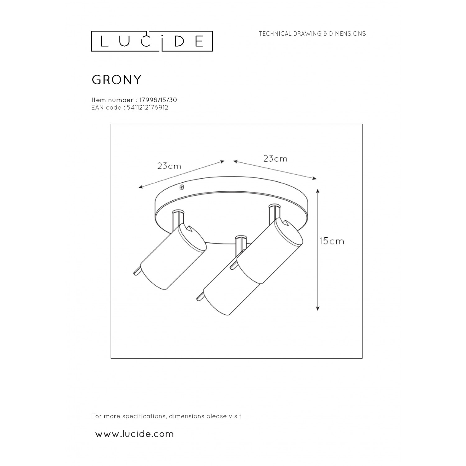 Griestu spot gaismekli GRONY izceļ tā dizainā iekļautie matēta zelta krāsas elementi. Šo gaismas avotu ir iespējams grozīt un rotēt, lai gaisma spīdētu nepieciešamajā virzienā. Gaismekļa dizains iekļausies gan modernā, gan senlaicīgā interjerā. Gaismekļa komplektā ietilpst divi gaismas avoti, kurus iespējams savienot ar gaismas regulatoru / reostatu, tādā veidā būs iespējams mainīt gaismas spilgtumu un radīt nepieciešamo atmosfēru telpā.