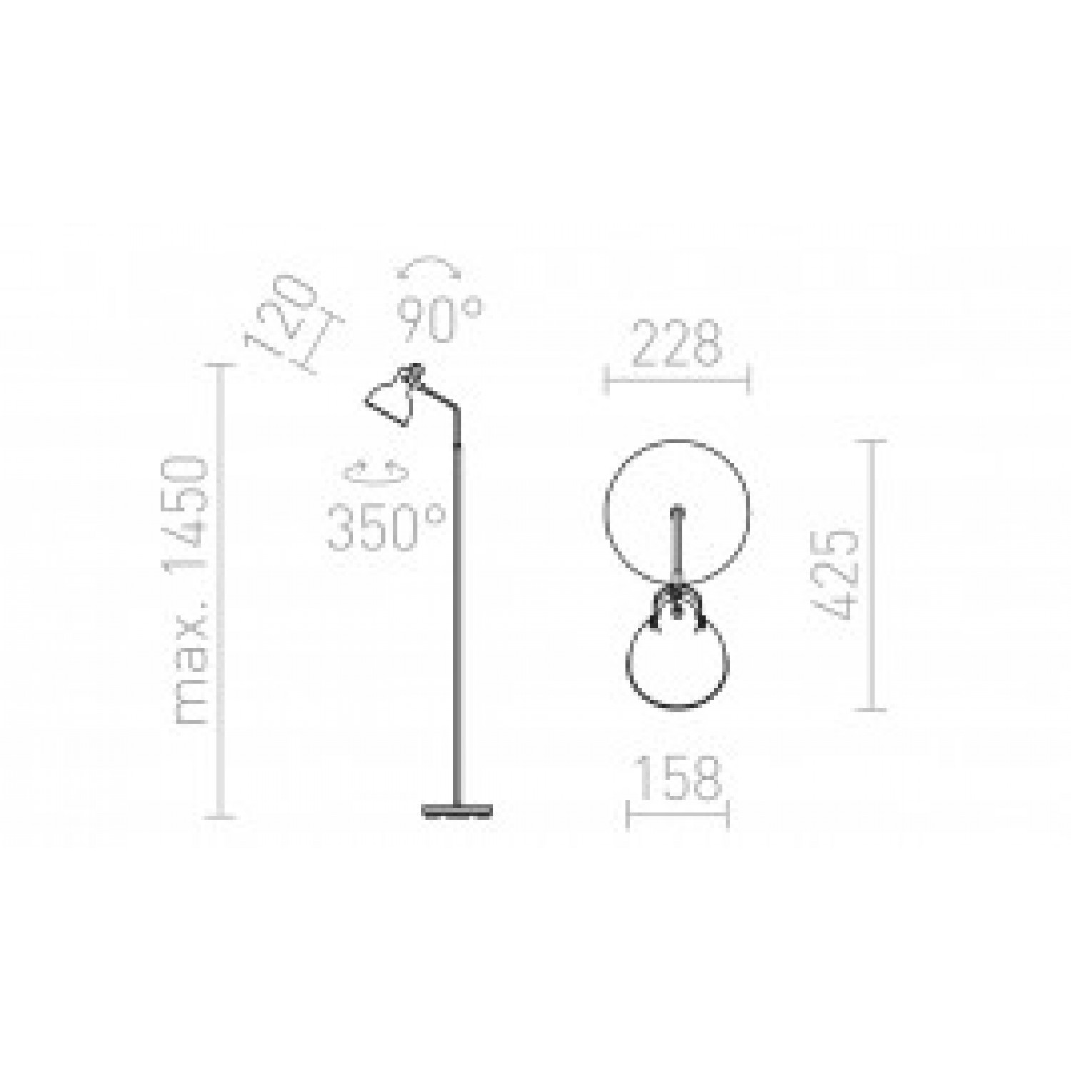 Gaismekļa augstums no zemes: 1450mm