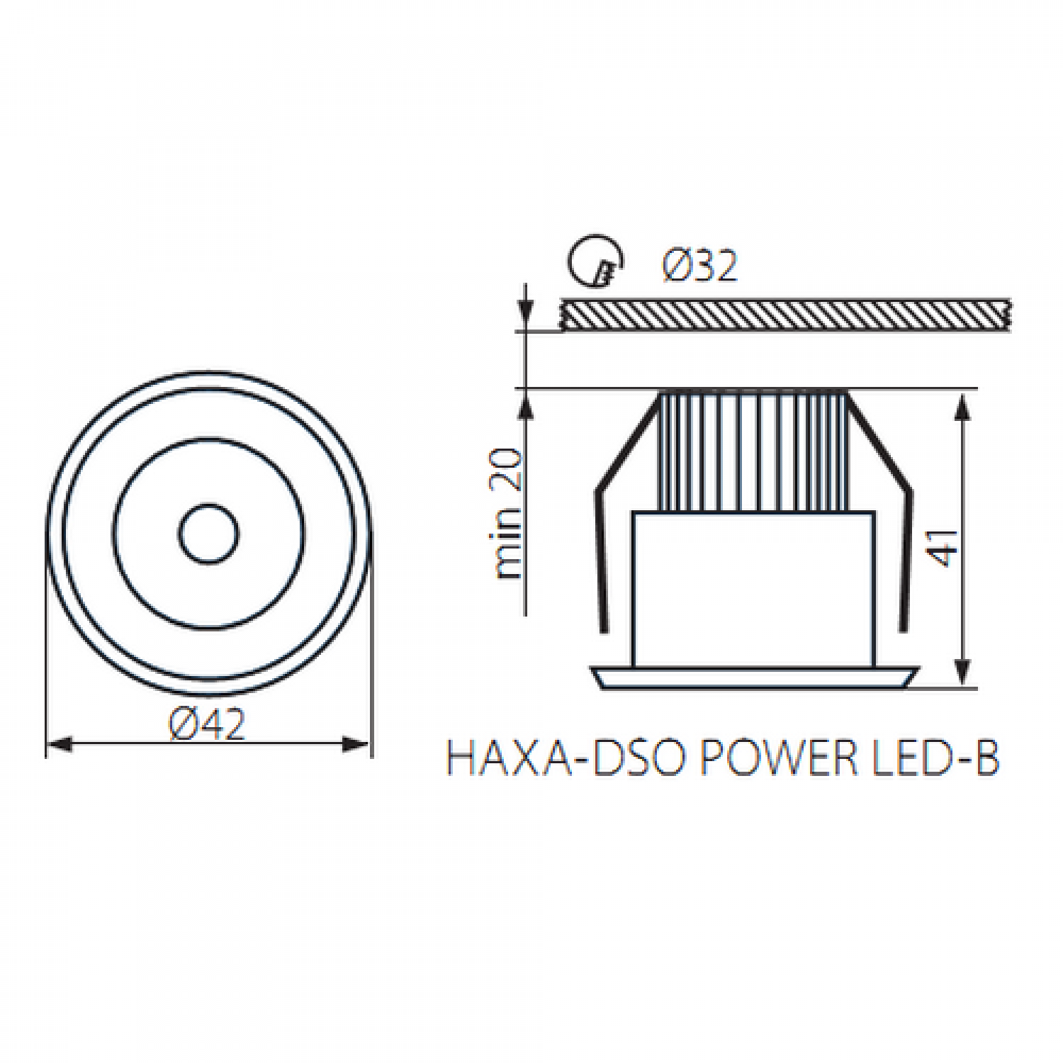 Iebūvējams gaismeklis "HAXA-DSO", 1W PowerLED modulis, alumīnijs