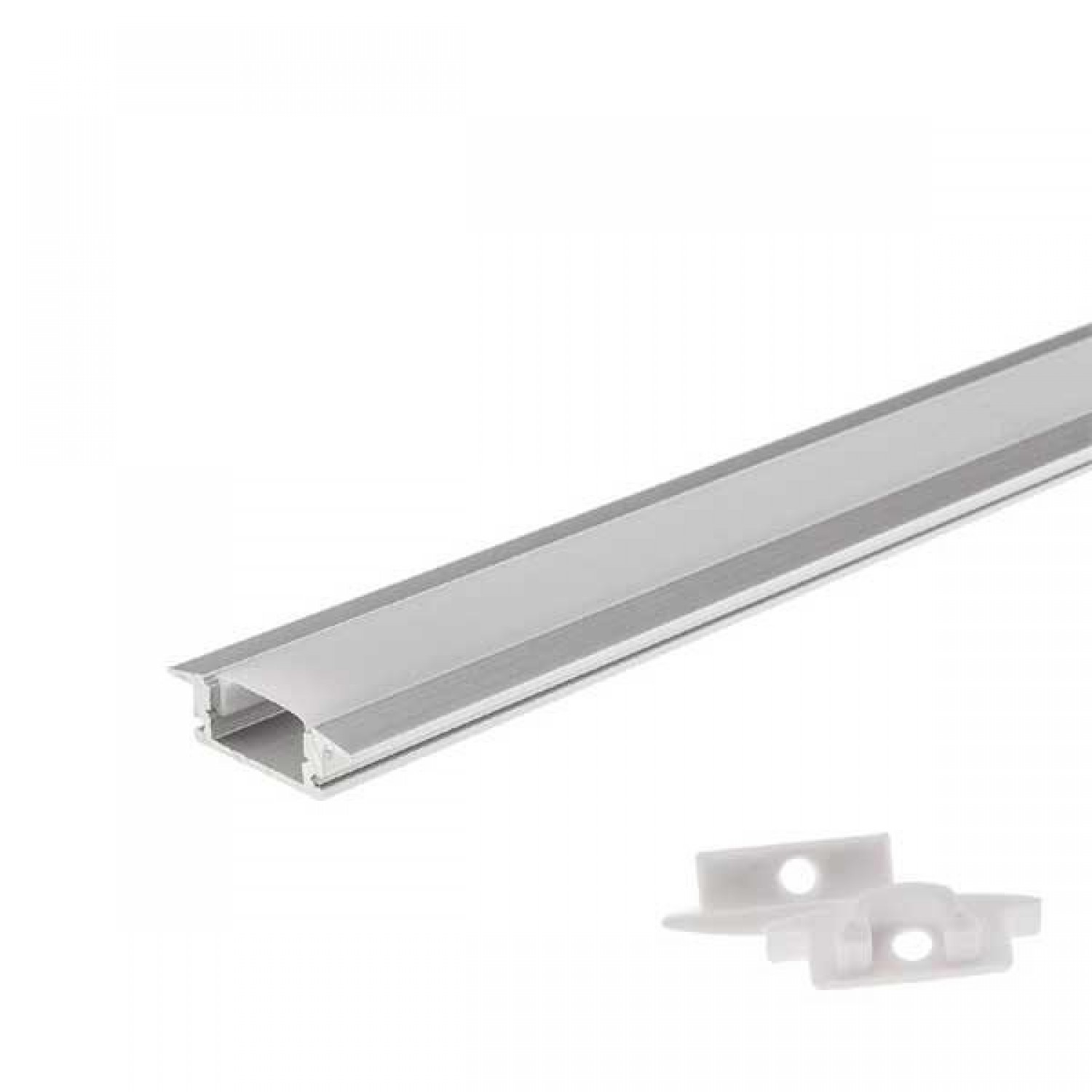 Iefrēzējams 1m alumīnija profils LED sloksnēm. Profilam komplektā iekļauta matēta plastikāta uzlika kā arī abi uzgaļi.