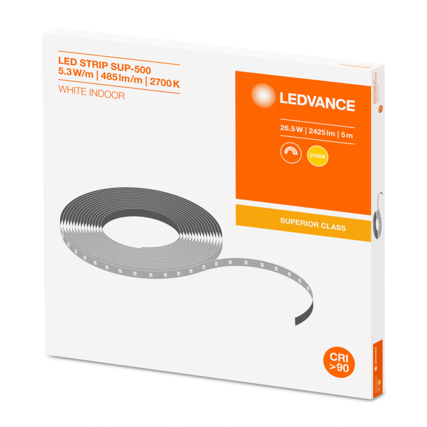 Šī Ledvance ražotā superior class LED sloksne nav salīdzināma ar citām LED sloksnēm gaismas kvalitātes ziņā. Gaismas atveides indekss ir virs 90% un diožu efektivitāte ir 92lm/W, kas ļauj ar 5.3W jaudu (1 metru) sasniegt 485lm gaismas spilgtumu. Siltais 2700K gaismas tonis ir patiesi patīkams un mājīgs, kā arī, visas apgaismotās virsmas, dēļ augstās krāsu atveides indeksa, būs patiesās krāsas, ko novērtēs ik viens.