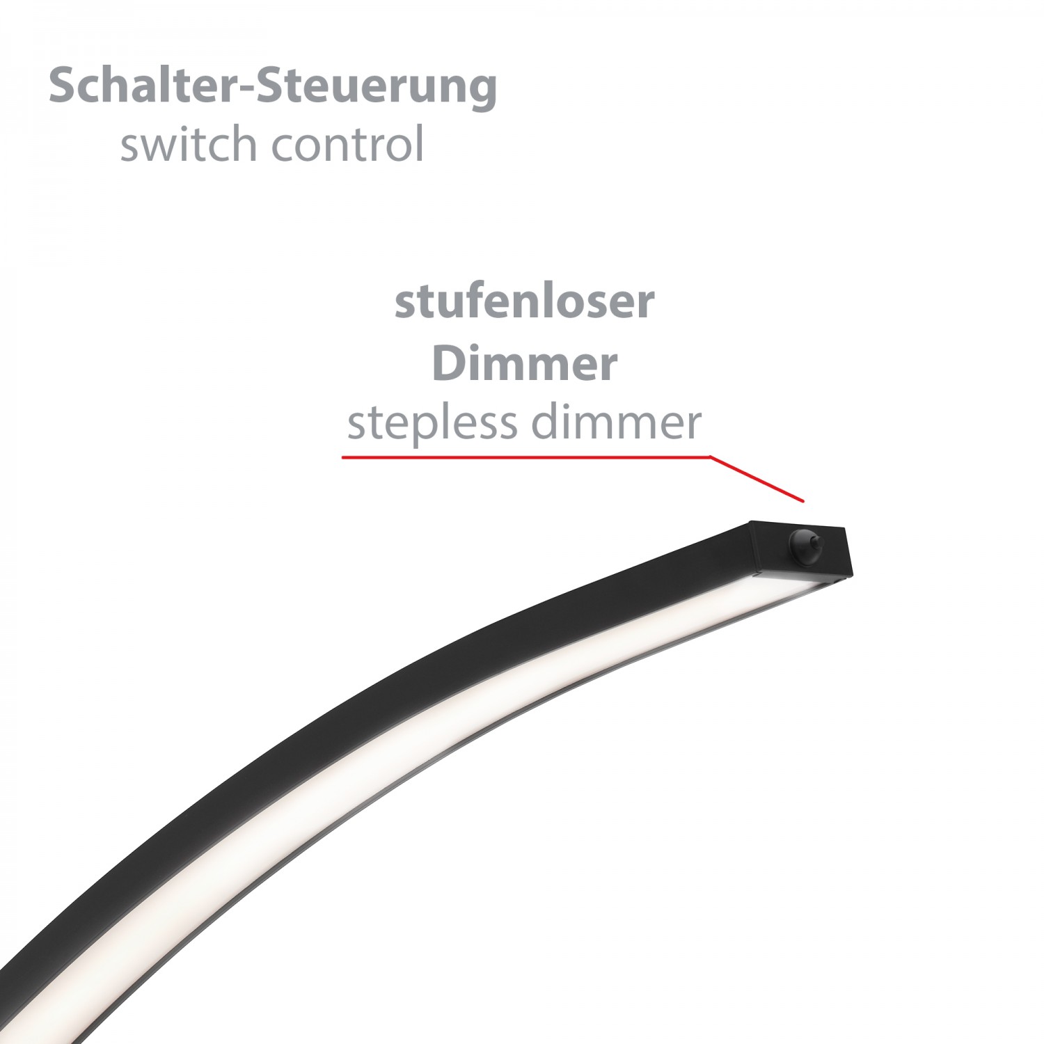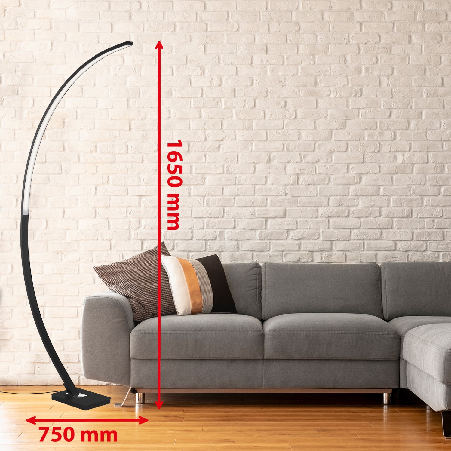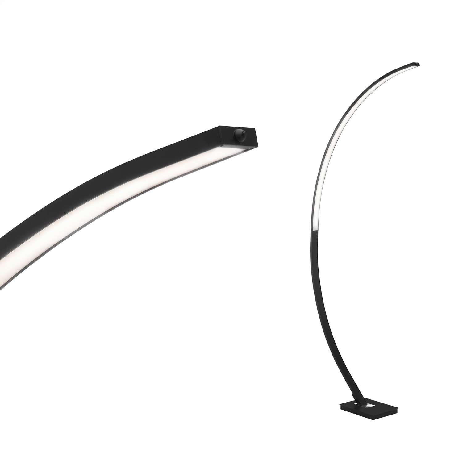 - Moderna LED stāvlampa melnā krāsā, izgatavota no metāla un plastmasas;