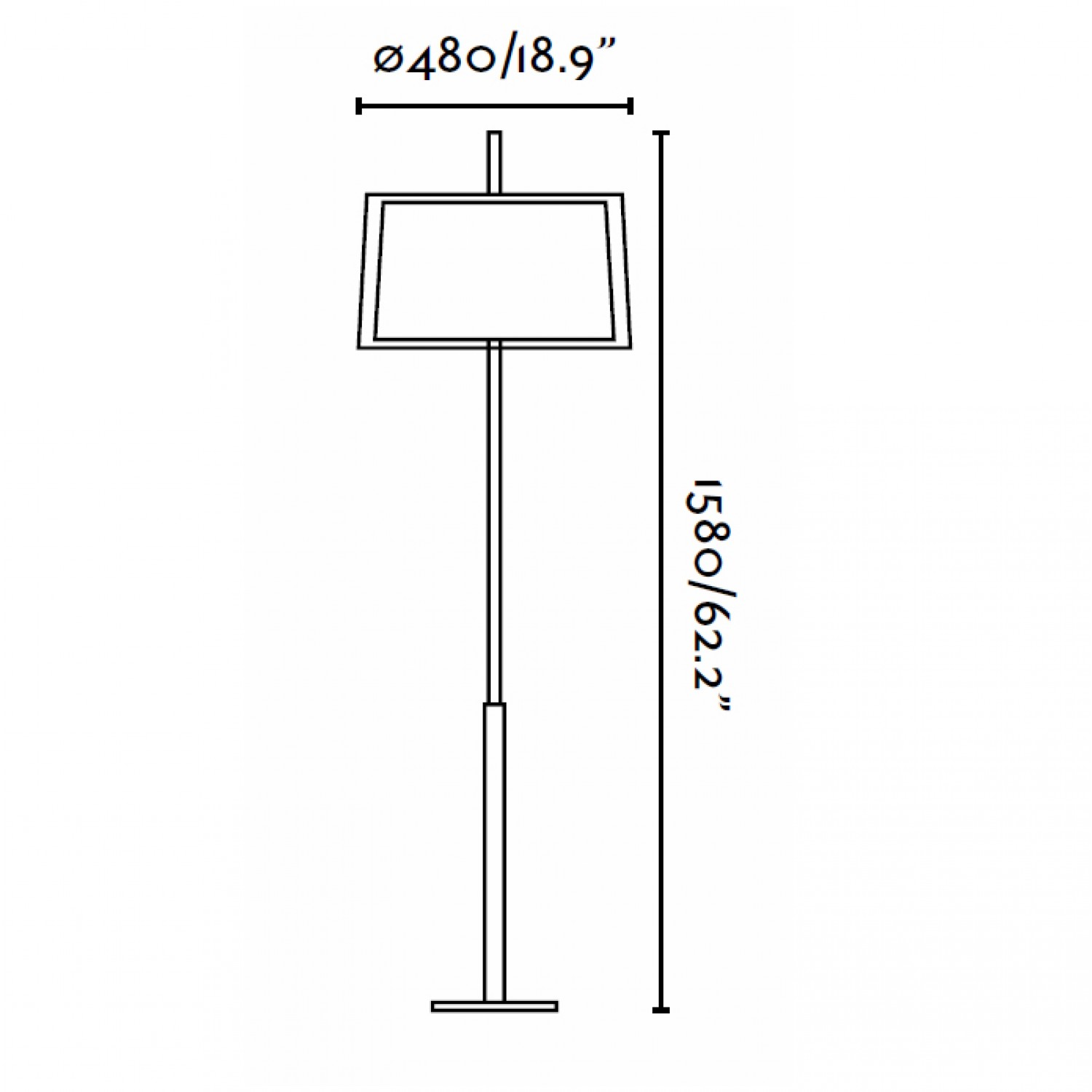 Klasiska stāvlampa, kas veidota no metāla ar tekstilu. Gaismas avots ir 1X E27 60W spuldze, kas komplektā nav iekļauta.