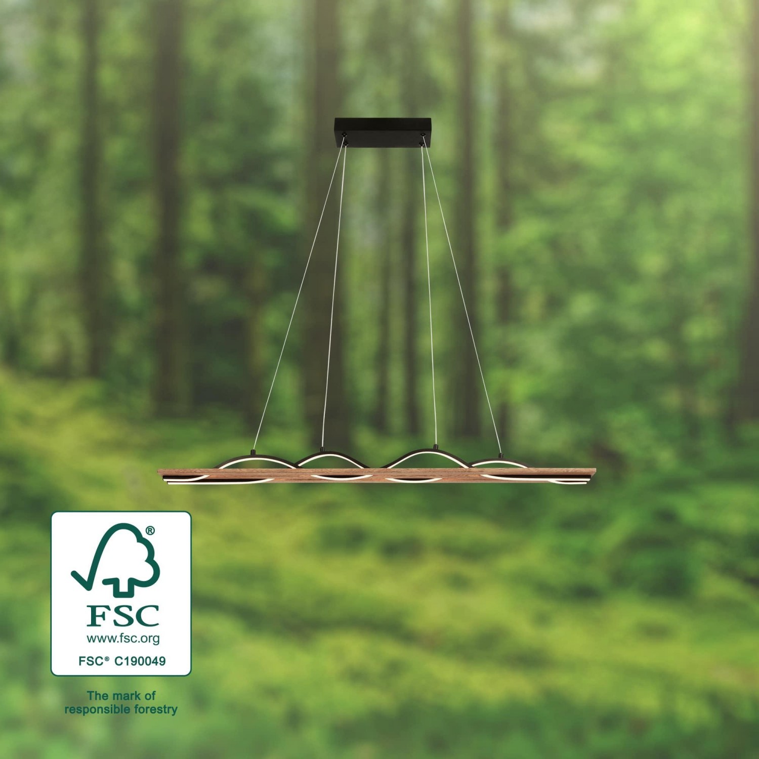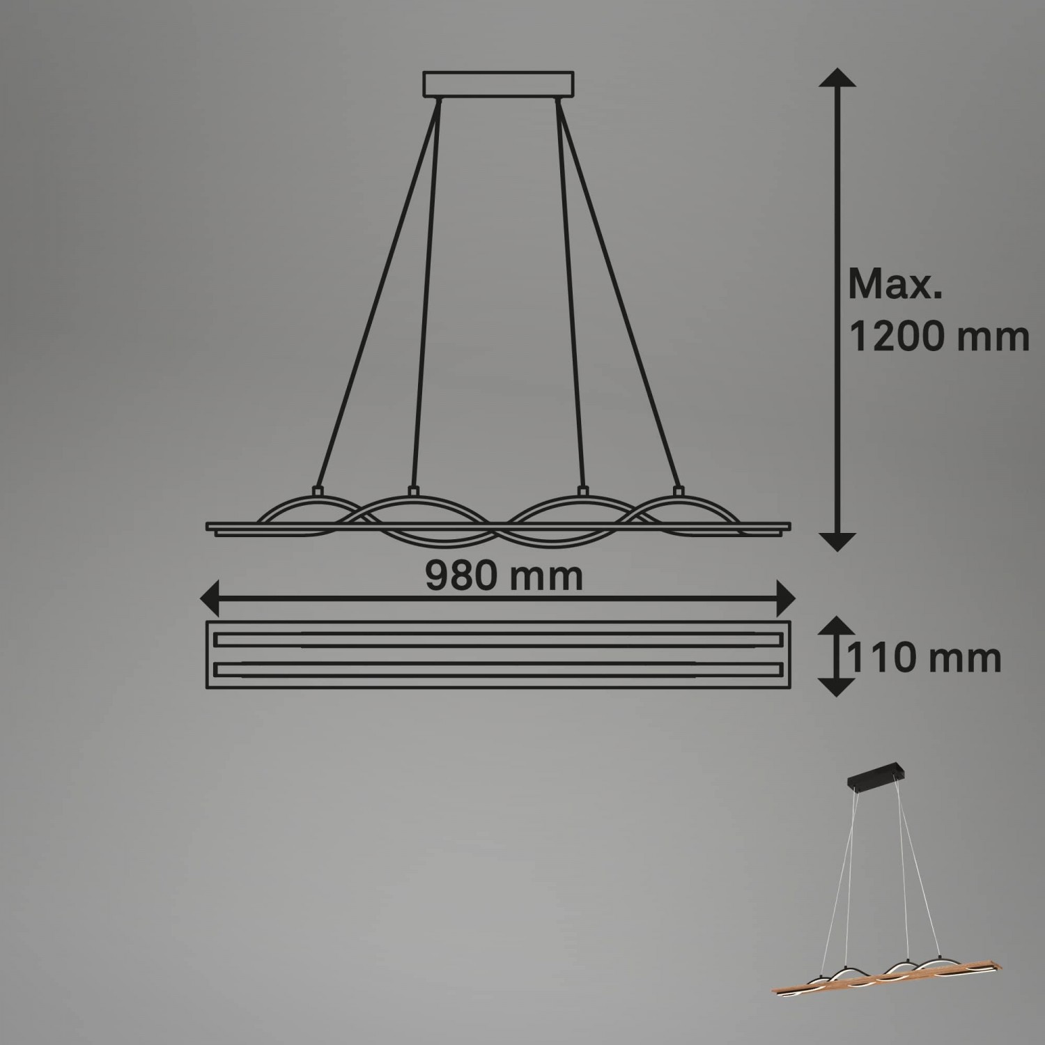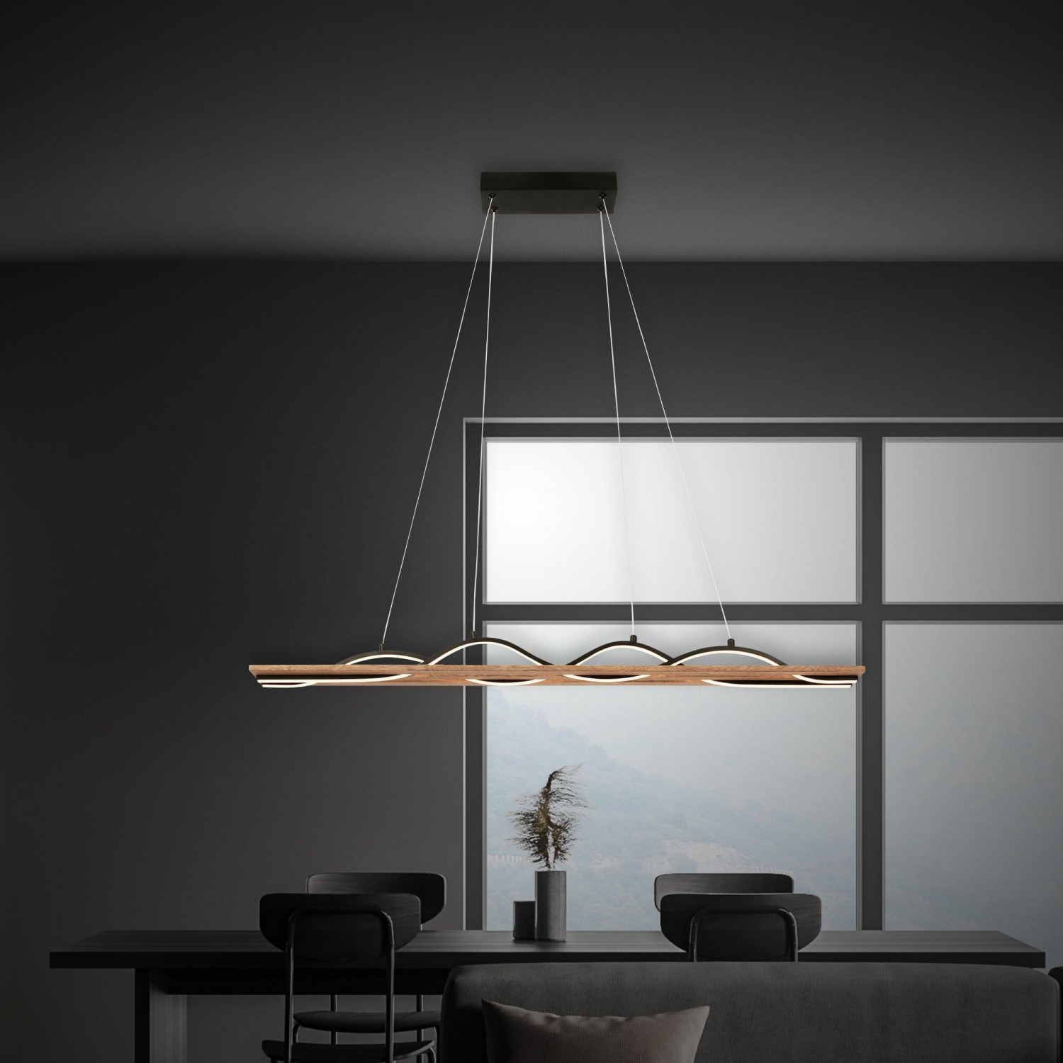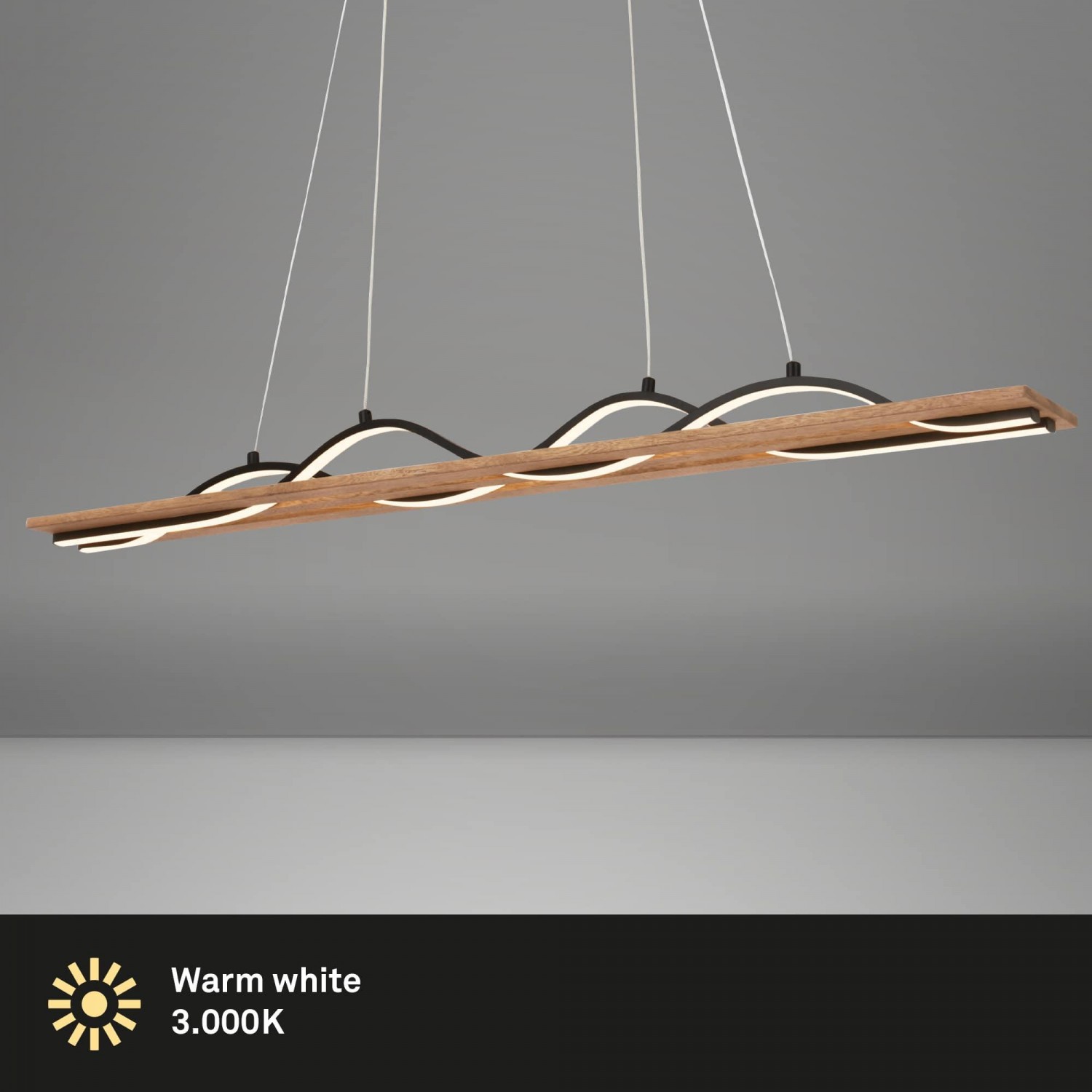 Tagi: LED piekarināmā lampa, viļņveida dizains, koka dekors, melna, Briloner